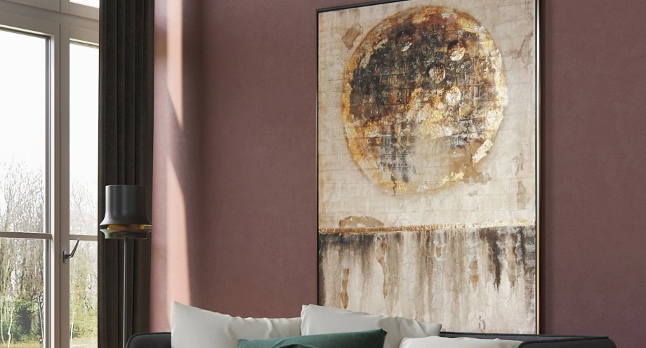 Ausführung: abstraktes handgefertigtes Ölgemälde mit Silberrahmen . reliefartig . zeitgenössisches Design . jedes Gemälde ist einzigartig